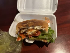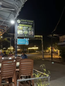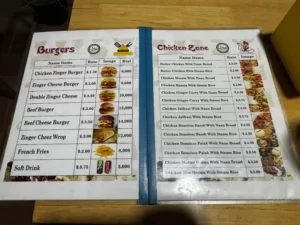 Update: I did in fact go back today and I can confidently suggest the chicken zinger burger for a quick $1.50 USD bite. It was well made with a sauce, tomato, lettuce, and cucumber on a soft bun. Best budget bite in Kampot!